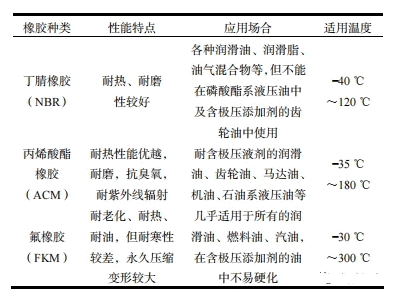 表1 幾種常見(jiàn)油封材料的特點(diǎn)及適用范圍